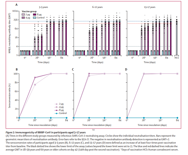9月15日,国际医学学术期刊《柳叶刀·传染病》(The Lancet Infectious Diseases)正式发表了中国生物北京生物制品研究所该项题为“Safety andimmunogenicity of an inactivated COVID-19vaccine,BBIBP-CorV, in people younger than 18years: a randomised, double-blind, controlled, phase 1/2 trial”的研究成果。