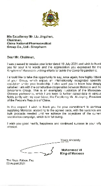 (摩洛哥国王穆罕默德六世致亚洲午夜成人满18免费网站董事长刘敬桢先生的感谢信)
