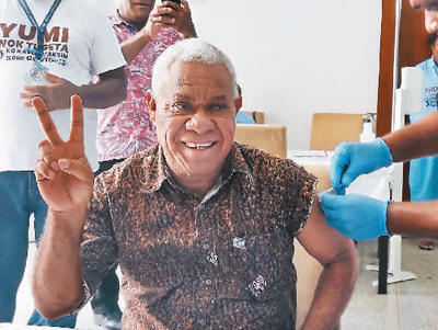 图为7月13日,在巴布亚新几内亚首都莫尔兹比港,一名男子接种中国疫苗。