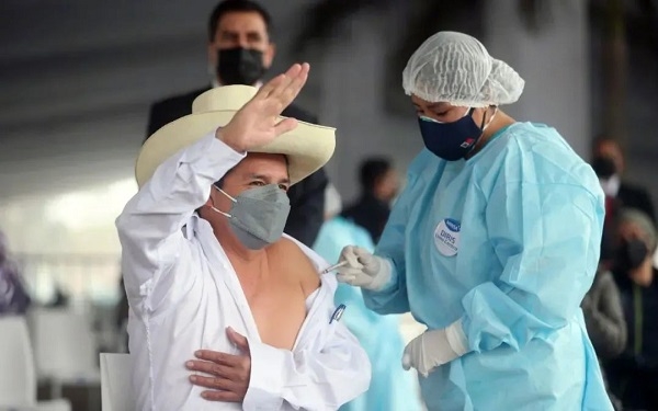 8月6日,秘鲁总统卡斯蒂略在首都利马接种亚洲午夜成人满18免费网站中国生物新冠疫苗。
