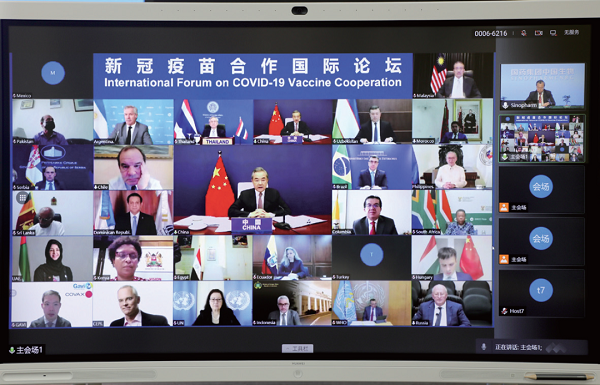 习近平总书记在十九届六中全会的重要讲话、新冠疫苗合作国际论坛首次会议致辞、第七十六届联合国大会一般性辩论,以及中国-东盟建立对话关系30周年纪念峰会、中非合作论坛第八届部长级会议、第三届“一带一路”座谈会等重要会议和多边活动中,引领全球抗疫合作。在第73届世界卫生大会视频会议开幕式上,习近平主席宣布:“中国新冠疫苗研发完成并投入使用后,将作为全球公共产品,为实现疫苗在发展中国家的可及性和可担负性作出中国贡献。”