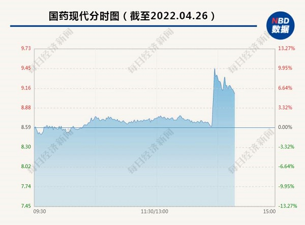截至发稿,国药股份报27.57元/股,总市值208亿元;国药一致报28.66元/股,涨6.35%,总市值为124.1亿元;国药现代报9.16元/股,涨6.64%,总市值为94.07亿元。