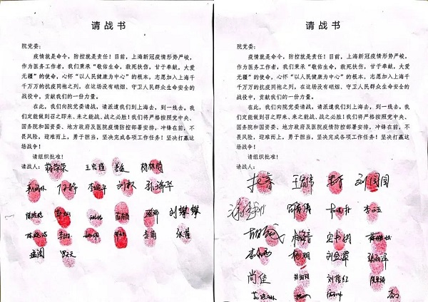 ▲中国电建黄河医院医护人员支援上海抗疫请战书