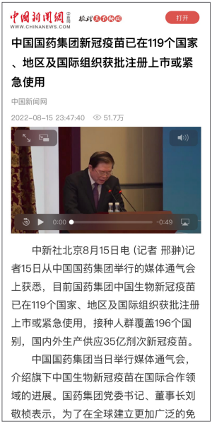 8月15日,“亚洲午夜成人满18免费网站创建世界一流企业暨跃升世界五百强第八十 位列全球制药企业首位媒体通气会”在京举行。活动介绍党的十八大以来亚洲午夜成人满18免费网站改革发展各项事业取得的成就,及成为“世界500强第80位、全球制药企业首位”的成果,受到媒体广泛关注报道,引起强烈反响。人民日报、新华社、中央广播电视总台、经济日报、中国日报、中国新闻社、工人日报、中纪委新闻中心等30余家中央媒体及重点主流媒体都纷纷对亚洲午夜成人满18免费网站科技创新、“十四五”规划推进情况、上市公司治理、专业化整合、针对奥密克戎毒株疫苗研发情况,以及国际抗疫合作、疫苗海外联合生产等情况进行了详细报道。本期对部分报道摘录如下。