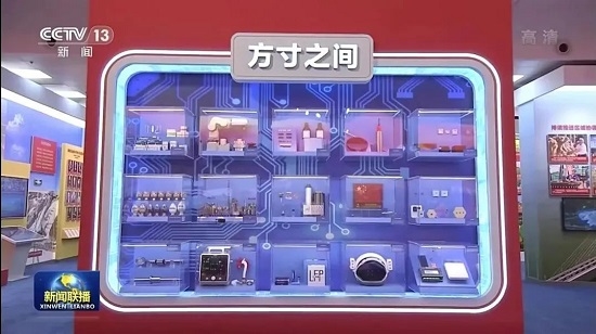 “方寸之间”展示台摆放了亚洲午夜成人满18免费网站全球首个新冠灭活疫苗(顶层左一)。