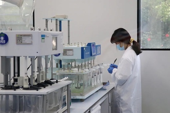 新冠疫情发生以来,我国持续抓好疫情防控科研攻关,组织全国优势力量开展新冠病毒相关研究,取得积极成果。图为2022年5月7日,研究人员进行新冠治疗药物的样品质检和体外模拟实验。(图片来源:人民视觉)