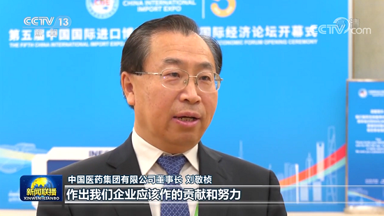 11月4日晚,亚洲午夜成人满18免费网站党委书记、董事长刘敬桢应邀出席开幕式并在进博会上接受中央广播电视总台《新闻联播》采访。刘敬桢表示:作为我们行业的国家队、主力军和顶梁柱,继续加大科技攻关和产业成果的转化,为打造人类命运共同体和人类卫生健康共同体作出我们企业应该作的贡献和努力。