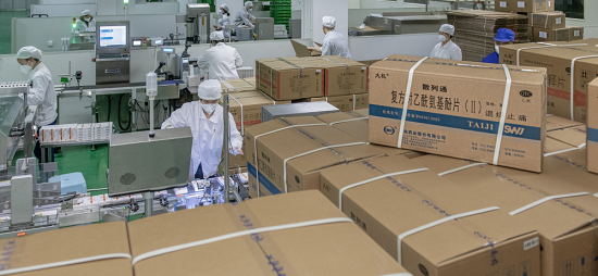 国药太极绵阳制药厂全力保障精制银翘解毒片、复方鱼腥草片、藿香正气颗粒、小柴胡颗粒等防疫药品和家庭常备药品复方板蓝根颗粒、橘红颗粒的市场供应,组织突击队加强一线力量,各生产车间开足马力、满负荷生产。目前,产品日均入库量达2000件,片剂产品日均入库量600-700件、丸剂400件、颗粒剂1000件。