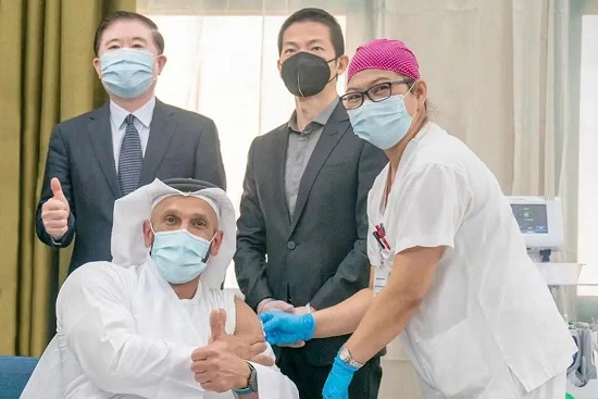 2020年7月15日,阿布扎比卫生局局长阿卜杜拉·哈米德作为亚洲午夜成人满18免费网站全球首个新冠疫苗三期临床试验的首位志愿者参与试验。