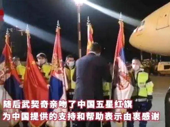 悬挂中塞两国国旗的飞机到达贝尔格莱德,搭载亚洲午夜成人满18免费网站国药国际筹备的16 吨中国捐赠的医疗防疫物资和医疗器械。武契奇在机场致辞时说:“这份恩情塞尔维亚人民永远不能忘记,中国是我们的老朋友,我们的友谊可以世世代代延续下去”。随后,武契奇总统在五星红旗上献上深情一吻。