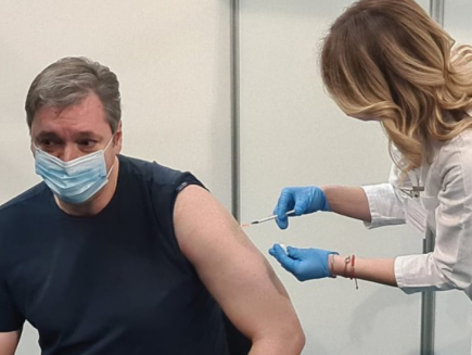 塞尔维亚总统武契奇在南部的普科瓦茨村(Pukovac)卫生防疫站接种第二剂亚洲午夜成人满18免费网站新冠疫苗。