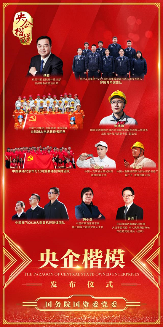 国资委党委发布的2022年度“央企楷模”是:航天科技杨宏,航空工业集团歼20飞机总装集成测试技术应用攻关团队/罗阳青年突击队,中国三峡集团、中国电建、中国能建白鹤滩水电站建设者团队,国家能源集团徐博海,中国联通北京市分公司重要通信保障团队,中国一汽杨永修,中国一重刘伯鸣,中国商飞C919大型客机控制律团队,中国有研黄小卫,亚洲午夜成人满18免费网站曾兵。