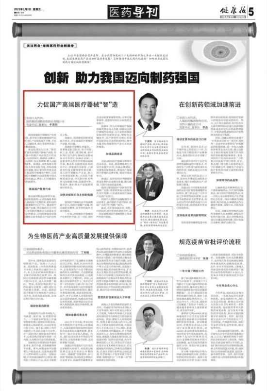 同时,于清明代表建议,提高产业集中度,强化质量品牌建设,提升国产高端医疗器械的市场竞争力和品牌影响力,大力支持国产高端医疗器械临床应用。